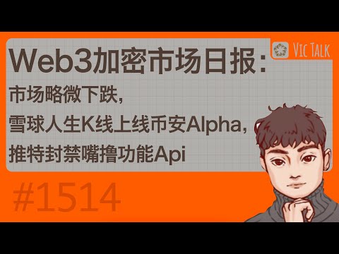 Web3加密市场日报:市场略微下跌,雪球人生K线上线币安Alpha,推特封禁嘴撸功能Api【Vic TALk 第1514期】