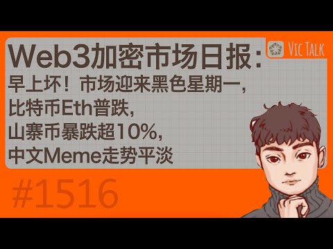 Web3加密市场日报:早上坏!市场迎来黑色星期一,比特币Eth普跌,山寨币暴跌超10%,中文Meme走势平淡【Vic TALK 第1516期】