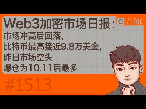 Web3加密市场日报:市场冲高后回落,比特币最高接近9.8万美金,昨日市场空头爆仓为10.11后最多【Vic TALk 第1513期】