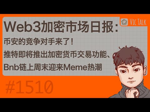 Web3加密市场日报:币安的竞争对手来了!推特即将推出加密货币交易功能、Bnb链上周末迎来Meme热潮【Vic TALK 第1510期】