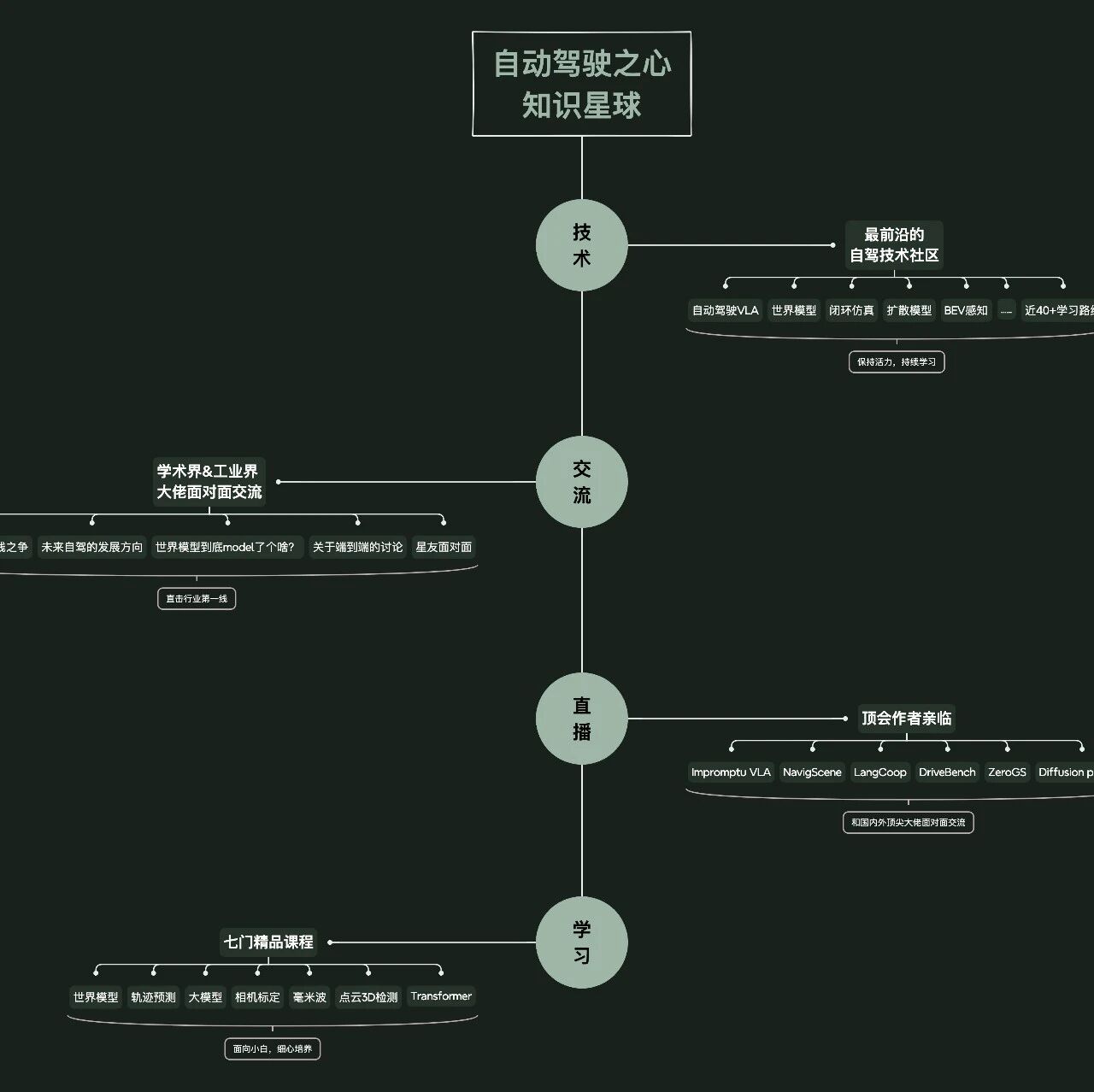新空部发 百活动采啦 活动时间: 11.1 - 11.11 ME ON I 课程优惠 单门课程 8折 * 自动驾驶系列课程 门课程 74元 ★ 自动驾驶之心超级课程折扣卡299 其他优惠 知识星球 7折 优惠 ★ 彩 红分十雄已行000月宣讲切11M 点击下方 卡片 ,关注" 自动驾驶之心 "公众号 戳我-> 领取 自动驾驶近30个 方向 学习 路线 自动驾驶之心平台双十一活动开始了!这一次我们准备了如下的优惠活动: 添加小助理领取八折优惠券! 自动驾驶系列课程:单门八折/三门七折(规控/轨迹预测小班课除外); 课程超级折扣卡:一年内课程享受七折优惠(规控/轨迹预测小班课除外); 知识星球七折优惠,名额有限; 论文辅导最高抵扣10000元; 自研硬件黑武士001,限时优惠; 超级折扣卡!一年内课程享受七折优惠 与此同时,我们也准备了星球的大额福利!新人加入七折,续费五折。名额有限~ 星球核心内容一览! 自动驾驶之心 知识星球 技 最前沿的 术 自驾技术社区 6 6 6 r r r r 自动驾驶VLA 世界模型 闭环仿真 扩散模型 BEV感知 -- 近40+学习路线 (保持活力,持续学习 交 学术界&工业界 大 ...