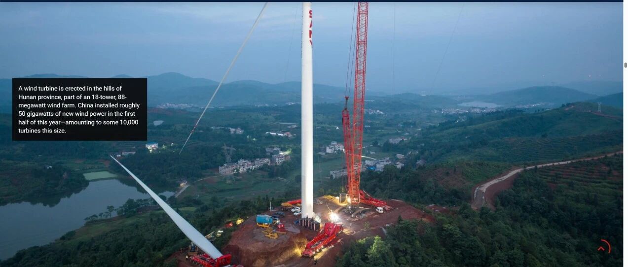 ▲ 摄影:Ge o rg e St e i nme t z 专题中的系列照片,完整呈现了风电叶片从工厂智能制造、跨区域陆路运输到山地现场吊装的全流程关键环节,成为中国风电产业高质 量蓬勃发展的生动缩影。无论国际舆论场评价如何,中国风电产业始终以扎实的技术沉淀与超大规模的应用实践,不断突破风电开发边 界,默默重塑着全球清洁能源的版图。 日前,全球顶尖科研期刊《科学》(Sc i e nc e)杂志公布了2 025年度十大科学突破评选结果,"中国引领下的可再生能源发展"位列榜 首。同期,《自然》(Na t ur e)期刊亦将"中国引领可再生能源跨越式发展"选为2025年振奋人心的七大科学突破。其中,中国风电产 业的发展成果,被写在了最显眼的位置。 位于湖南韶山的全球首座风电行业"灯塔工厂"——三一韶山叶片工厂的系列照片,更是登上《科学》杂志"The Gr e e n Gi a nt(绿色巨 人)"专题报道。 《科学》杂志中提到,"从中国工厂涌出的技术浪潮改变了中国的能源格局... ..中国太阳能和风力发电场现在的总装机容量足以满足整 个美国的电力需求。"文中的一张配图的注释更清晰写道:"风力发电机叶片正等待从三一工 ...