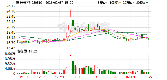 同期股价呈现震荡上行态势。内部数据库显示,2026年2月6日至2月12日间,股价从17.42元升至18.04 元,区间涨幅4.10%,最高价18.19元(2月12日),最低价17.16元(2月6日)。2月12日最新价为18.04元,当 日涨幅3.20%,成交金额2845.01万元,换手率1.69%,量比2.18显示交投活跃度提升。5日振幅为 5.94%,波动相对温和。 经济观察网近7天内,丰光精密(920510)融资余额连续3日下降,近5日减少0.03亿元,降幅达11.32%,反 映短期资金面承压。同期股价呈现震荡上行态势,区间涨幅4.10%,2月12日最新价为18.04元,当日涨 幅3.20%,成交活跃度有所提升。 股票近期走势 以上内容基于公开资料整理,不构成投资建议。 ...