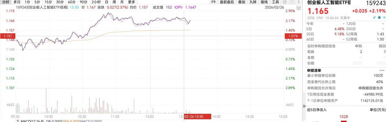 英伟达业绩全面超预期,算力板块沸腾,创业板人工智能ETF招商(159243)午后涨超2%,成分股星辰科技、润泽科技飙涨!