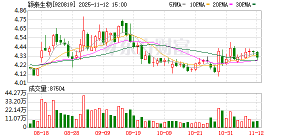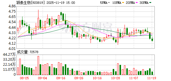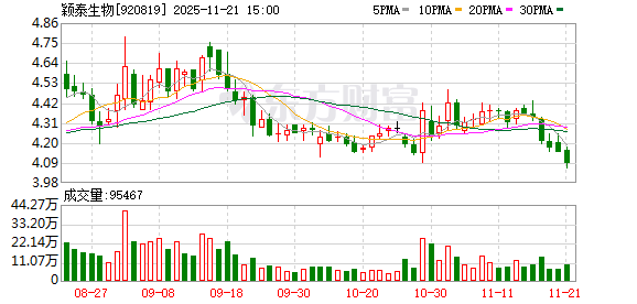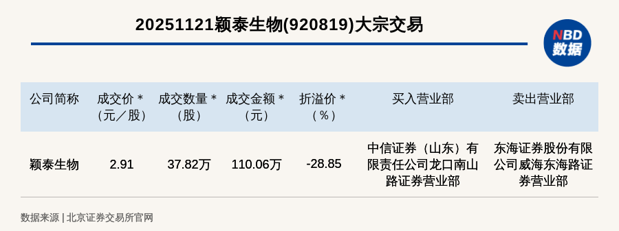 北交所上市公司颖泰生物大宗交易折价31.05%,成交金额110.71万元