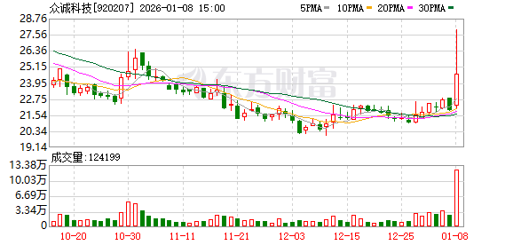 (文章来源:证券日报) 证券日报网讯 1月9日,众诚科技发布公告称,公司股票最近2个有成交的交易日(2026年1月8日至2026 年1月9日)以内收盘价涨幅偏离值累计达到44.12%,属于股票交易异常波动情形。经核实,前期公告 的事项不存在需要更正、补充之处;未发现可能或已经对本公司股票交易价格产生较大影响的媒体报道 或市场传闻,不涉及热点概念事项;近期公司经营情况及内外部经营环境未发生重大变化;公司、控股 股东和实际控制人不存在关于本公司的应披露而未披露的重大事项,或处于筹划阶段的重大事项;不存 在其他可能对股价产生较大影响的重大事件。 ...