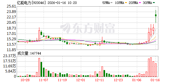 亿能电力涨24.22%,股价创历史新高