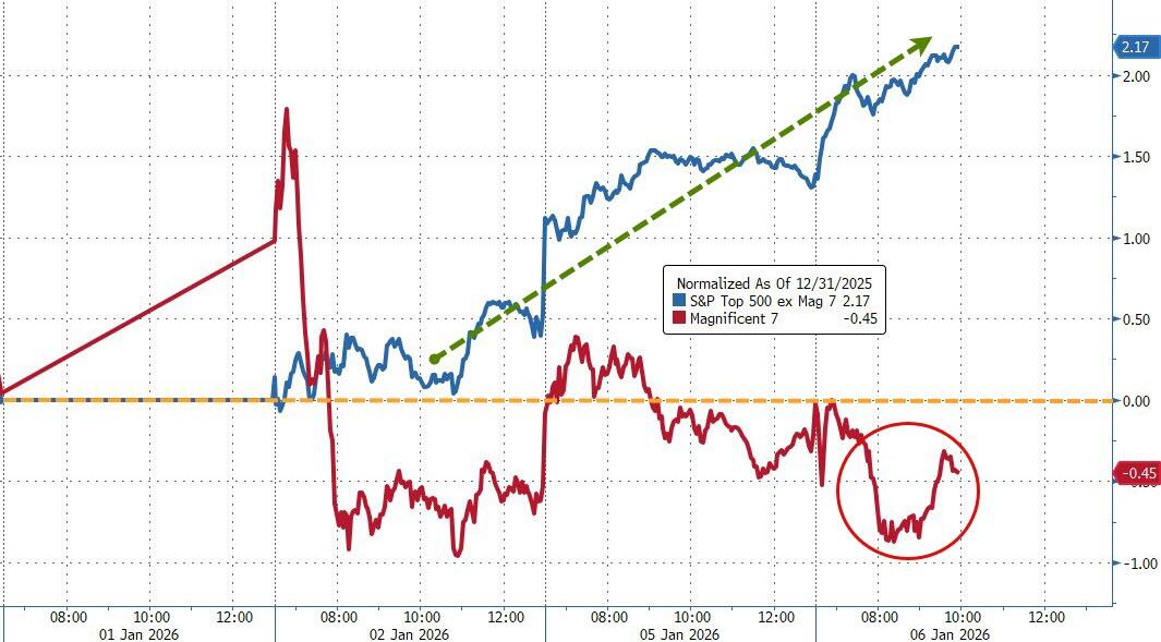 高盛董事总经理Chris Hussey指出,美国经济增长加速叠加货币政策宽松,将推动2026年初周期性板块上涨,包括小盘股、面向中等收入消费者的股票 以及与非住宅建筑周期相关的公司。 市场结构正在发生显著变化。进入2026年以来,包括英伟达、苹果、微软、谷歌母公司Alphabet、亚马逊、特斯拉和Meta在内的"科技七巨头"(Mag7) 总体累跌约0.5%,而标普500指数中的其余493只成分股总体累涨2.5%。随着投资者开年重新配置资产,工业、医疗保健和科技板块年初三个交易日表 现突出。 高盛高级投资组合策略师Ben Snider强调,业绩增长贡献了2025年标普500指数16%价格回报中的14个百分点,自1990年以来占该指数9%年化涨幅中的8 个百分点。在健康的经济增长和美联储持续宽松的宏观背景下,高盛预计标普500成分股2026年每股收益(EPS)将增长12%,2027年增长10%。 美国股市2026年开局呈现集中度分散化趋势,业绩增长正成为推动市场上涨的核心动力。高盛预计标普500指数2026年将上涨至7600点,主要由12%的 盈利增长驱动。 最后是价值投资机会。在2025年表现意外强劲后,较宽的 ...