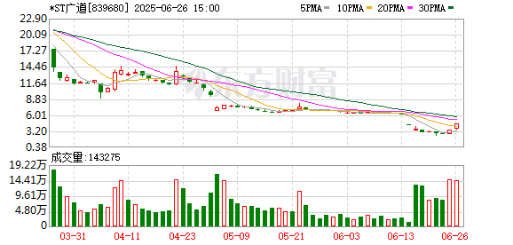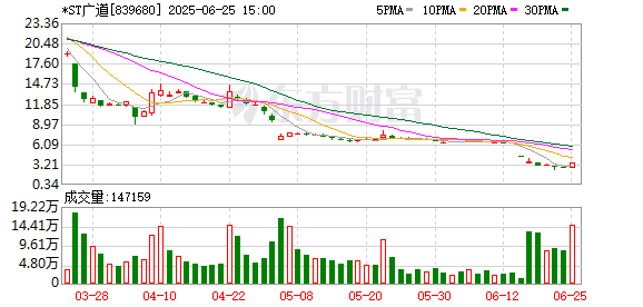 证券代码:839680 证券简称:*ST 广道 公告编号:2025-051 深圳市广道数字技术股份有限公司股票交易异常波动公告 本公司及董事会全体成员保证公告内容的真实、准确和完整,没有虚假记载、误导性陈述 或者重大遗漏,并对其内容的真实性、准确性和完整性承担个别及连带法律责任。 一、股票交易异常波动的具体情况 公司股票最近 2 个有成交的交易日(2025 年 6 月 17 日-2025 年 6 月 18 日)涨跌幅偏离 值累计达到-40.91%,根据《北京证券交易所交易规则(试行)》的有关规定,属于股票交易 异常波动情形。 二、公司关注并核实的相关情况 1、 核实对象: 公司控股股东、实际控制人及一致行动人,持股 5%以上股东,在任的董事、监事及高 级管理人员。 2、 核实方式: 电话询问、口头询问、微信询问等方式。 3、 核实结论: 公司于 2025 年 6 月 13 日收到中国证监会下发的《行政处罚事先告知书》(【2025】12 号)(以下简称"《告知书》"),根据收到的《告知书》认定情况,公司可能触及《北京证券交 易所股票上市规则》10.5.1 条规定的重大违法行为,可能被实施重大违法强制退市。根据《 ...
