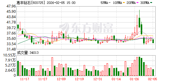惠丰钻石(920725)披露获得政府补助公告,1月30日股价下跌9.31%