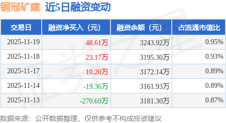 铜冠矿建:11月19日融资净买入48.61万元,连续3日累计净买入81.98万元