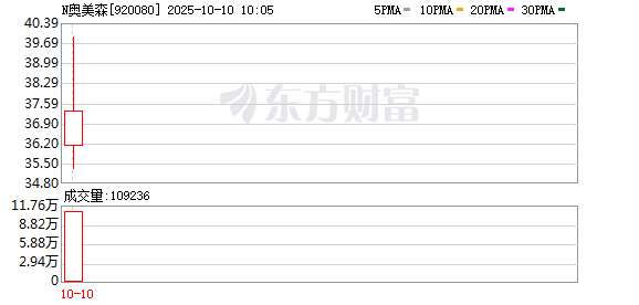 北交所新股N奥美森(920080)今日上市,开盘上涨337.70%,截至上午收盘涨幅回落至336.24%,半日 成交量1407.33万股,成交额5.23亿元,换手率62.11%。 公司本次公开发行数量为2000.00万股,发行价格为8.25元,发行市盈率12.52倍,网上发行量为1600.00 万股。根据超额配售选择权机制,信达证券已向网上投资者超额配售300.00万股,占初始发行股份数量 的15.00%,同时网上发行数量扩大至1900.00万股。本次发行战略配售股份合计400.00万股,占初始发 行规模的20.00%。 本次网上发行有效申购数量8537654.97万股,有效申购倍数为4493.50倍,有效申购 户数为59.88万户,网上获配比例为0.02%。(数据宝) (文章来源:证券时报网) 证券时报·数据宝统计显示,公司是专业的智能装备制造生产商,主要从事智能生产设备及生产线的研 发、设计、生产、销售,公司产品可广泛应用于电器、环保、风电和锂电新能源及其他行业等领域,是 实现生产自动化、智能化和高效化的关键装备。 2022年、2023年、2024年公司净利润分别为1938.93万元、4816.47万元、 ...
