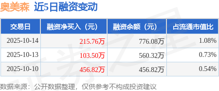 奥美森:10月14日融资净买入215.76万元,连续3日累计净买入776.08万元