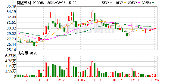 证券代码:920098 证券简称:科隆新材 公告编号:2026-014 陕西科隆新材料科技股份有限公司 2025 年年度业绩快报公告 本公司及董事会全体成员保证公告内容的真实、准确和完整,没有虚假记载、 误导性陈述或者重大遗漏,并对其内容的真实性、准确性和完整性承担个别及连 带法律责任。 特别提示:本公告所载 2025 年年度主要财务数据为初步核算数据,未经会 计师事务所审计,具体数据以公司 2025 年年度报告中披露的数据为准,提请投 资者注意投资风险。 一、2025 年年度主要财务数据和指标 单位:元 | 项目 | 本报告期 | 上年同期 | 变动比例% | | --- | --- | --- | --- | | 营业收入 | 476,383,689.21 | 483,455,835.37 | -1.46% | | 利润总额 | 63,646,433.13 | 101,273,322.98 | -37.15% | | 归属于上市公司股东 | 56,942,151.48 | 86,913,496.38 | -34.48% | | 的净利润 | | | | | 归属于上市公司股东 | 51,733,534.4 ...