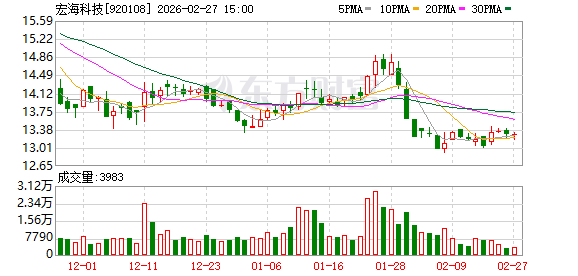宏海科技(920108)披露2025年年度业绩预告,1月29日股价下跌3.12%