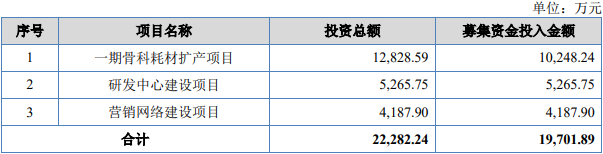 | 序号 | 项目名称 | 投资总额 | 募集资金投入金额 | | --- | --- | --- | --- | | | 一期骨科耗材扩产项目 | 12,828.59 | 10.248.24 | | 2 | 研发中心建设项目 | 5,265.75 | 5,265.75 | | 3 | 营销网络建设项目 | 4,187.90 | 4.187.90 | | | 合计 | 22,282.24 | 19,701.89 | 中国经济网北京2月10日讯 苏州爱得科技发展股份有限公司(以下简称"爱得科技",920180.BJ)今 日在北交所上市。截至今日收盘,爱得科技报21.23元,涨幅176.79%,成交额5.53亿元,振幅62.19%, 换手率89.61%,总市值25.08亿元。 爱得科技主要从事以骨科耗材为主的医疗器械的研发、生产与销售,主要产品包括脊柱类、创伤 类、运动医学等骨科医用耗材以及用于伤口疗愈的创面修复产品。公司坚持以骨科临床需求为导向,致 力于成为国内领先的、覆盖骨科全领域产品矩阵的骨科手术综合解决方案提供商。 截至招股说明书签署日,陆强直接持有爱得科技34.99%的股份,黄美玉直接持有爱得科技38. ...