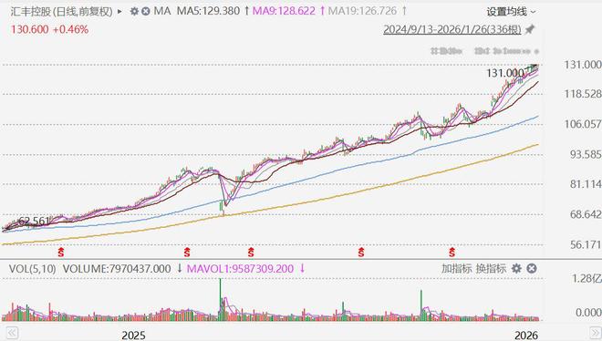 入选了2026年格隆汇"全球视野"十大核心资产的汇丰控股(0005.HK)盘中涨近1%至131港元,股价创历 史新高,市值达2.25万亿港元。 ...