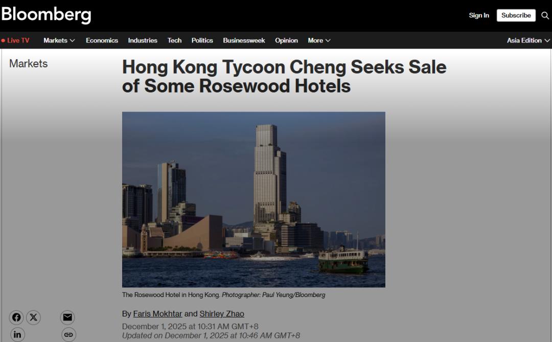 Core Viewpoint - The potential sale of the Rosewood Hotel Group's assets, particularly the flagship Rosewood Hong Kong, is a strategic move by the Cheng family to address financial pressures faced by New World Development amid ongoing liquidity challenges [1][3][10]. Group 1: Asset Sale and Financial Strategy - New World Development's chairman, Cheng Ka-shun, has reportedly initiated discussions with potential buyers regarding the sale of parts of the Rosewood Hotel Group, with talks currently in preliminary stages [1]. - The Rosewood Hong Kong, valued at approximately HKD 15.9 billion, is considered a core asset in this potential transaction [2]. - The timing of the sale rumors coincides with New World Development's liquidity challenges, making the asset sale a critical measure to manage financial strain [3][10]. Group 2: Financial Performance and Debt Management - As of June 30, 2025, New World Development reported total debt of HKD 146.1 billion and a net debt of HKD 120.1 billion, with a significant loss of HKD 16.3 billion in the first half of 2025, marking a 38.07% increase in losses year-on-year [4]. - The company has undertaken various financial self-rescue measures, including a debt refinancing of HKD 88.2 billion, extending repayment terms to June 2028 [6]. - A debt exchange offer was announced in November 2025, aiming to replace existing securities with new perpetual capital securities and notes, potentially reducing net debt by HKD 13 billion if fully subscribed [7][9]. Group 3: Broader Asset Liquidation Efforts - New World Development has been actively selling assets to alleviate financial pressure, including the sale of the K11 office building in Shanghai and the Rosewood Hotel in Makati, Philippines [10]. - The company is also in discussions to sell the 11SKIES shopping center at Hong Kong International Airport, with estimates suggesting a sale price exceeding HKD 10 billion [10].