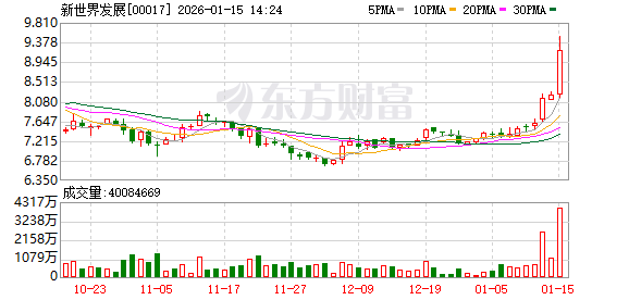 Group 1 - New World Development (00017.HK) has seen a significant increase of over 15%, with a cumulative rise of nearly 30% within the month [2] - As of the latest update, New World Development is up by 12.52%, trading at 9.26 HKD, with a transaction volume of 345 million HKD [2]