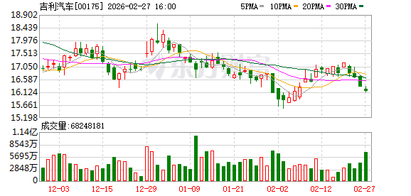 吉利汽车(00175)发布公告,于2026年2月27日斥资5943.27万港元回购367.3万股。 ...