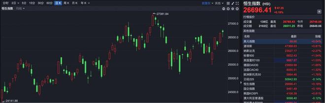 Market Overview - The Hong Kong stock market failed to maintain the strong performance from the previous day, opening slightly higher but remaining weak throughout the day, only closing in the green at the end [1] - The Hang Seng Index closed at 26,696.41 points, up 47.35 points, with a gain of 0.18% [1][2] Stock Performance - Among the constituents of the Hang Seng Index, only 31 stocks rose, 4 remained flat, and 53 declined [4] - Xpeng Motors (09868.HK) showed strong performance, initially rising over 11% in the morning and closing up 17.93%, with a market capitalization of HKD 207.2 billion, surpassing Geely Automobile's HKD 183.4 billion [4][5] - In October, Xpeng Motors delivered 42,000 smart electric vehicles, a year-on-year increase of 76% and a month-on-month increase of 1%, setting a new monthly delivery record [5] Sector Performance - Financial stocks supported the index, with HSBC Holdings rising 1.72%, and other banks like Standard Chartered, Qingdao Bank, Chongqing Bank, China Merchants Bank, and Agricultural Bank of China rising over 1% [5] - The telecommunications sector performed moderately well, with PCCW rising 1.7% and China Mobile up 0.8% [5] - Steel stocks led the market, with Chongqing Steel rising over 3%, Maanshan Iron & Steel up over 2%, and Ansteel up over 1% [6] - Conversely, sectors such as semiconductors, biomedicine, defense, and home appliances performed poorly, with tech stocks generally declining, although the losses narrowed towards the end of the day [7] Capital Flow - Southbound funds continued to net buy Hong Kong stocks, with a total net purchase of HKD 4.467 billion by the end of the trading day [8] Market Outlook - Short-term outlook suggests that as pessimism gradually dissipates, the Hong Kong stock market is expected to stabilize and recover in the fourth quarter, driven by breakthroughs in AI technology, easing of major power relations, and policy implementation [10] - In the medium to long term, the Chinese economy is expected to stabilize gradually, with continued profit release in the technology growth sector. The Hong Kong market is anticipated to enter a "slow bull" phase amid expectations of interest rate cuts by the Federal Reserve and ongoing capital inflows [10]