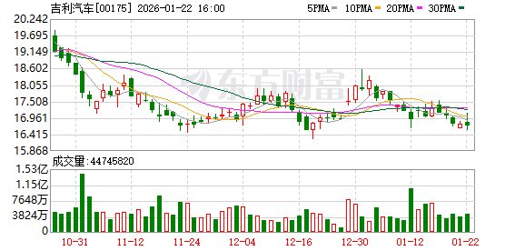 吉利汽车回购明细 | 日期 | 回购股数(万股) | 回购最高价(港元) | 回购最低价(港元) | 回购金额(万港元) | | --- | --- | --- | --- | --- | | 2026.01.22 | 57.10 | 16.740 | 16.580 | 949.29 | | 2026.01.21 | 237.60 | 16.810 | 16.620 | 3962.09 | | 2026.01.20 | 378.80 | 16.950 | 16.690 | 6362.86 | | 2026.01.19 | 9.70 | 17.090 | 16.950 | 165.00 | | 2026.01.12 | 900.70 | 17.150 | 16.630 | 15128.33 | | 2026.01.09 | 154.70 | 17.250 | 17.170 | 2662.29 | | 2026.01.08 | 392.50 | 17.380 | 17.170 | 6762.08 | | 2026.01.07 | 338.80 | 17.650 | 17.380 | 5915.60 | | 202 ...