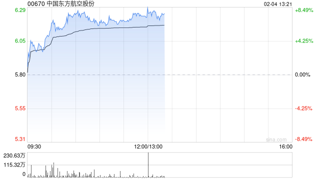 航空股午后涨幅居前 东方航空涨逾8%中国国航涨逾5%