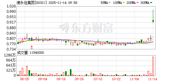 消息面上,德永佳集团发布截至2025年9月30日止6个月的中期业绩,该公司取得收益约27.12亿港元, 同比减少约9.65%;公司普通权益所有者应占溢利约1.12亿港元,同比增加约10.62%;每股股息4港仙。 公告称,收益减少主要由于经济环境疲弱所致,溢利增加主要受惠于集团在成本控制及营运效率提升方 面持续努力所得的成果。 智通财经APP获悉,德永佳集团(00321)涨超13%,截至发稿,涨13.58%,报0.92港元,成交额775.06万 港元。 ...