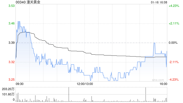 潼关黄金获蒋薇增持55万股 每股作价3.35港元