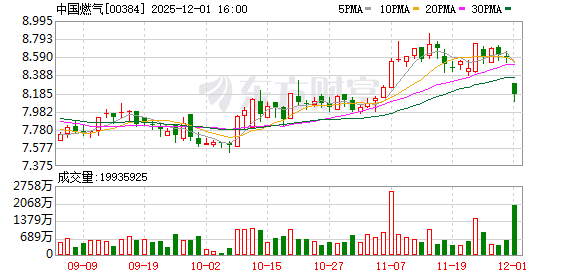 12月1日,中国燃气(00384.HK)低开3.49%后,持续低迷震荡,盘中最大跌幅近6%。股价下跌主要因为公司公布的上半财年的营收和净利润均 出现下降,盈利能力的弱化仍引发市场担忧。 中国燃气营收和利润双降 近日,中国燃气发布截至2025年9月30日止6个月的中期业绩。报告期内,公司营收为344.81亿港元,同比减少1.8%;毛利为55.06亿港元,同比 下降6.0%;归母净利润为13.34亿港元,同比下降24.2%。 近日,部分港股公用事业板块公司在业绩公布后,引发股价出现明显下跌。 该业绩发布后,中国水务11月28日的股价跌近4%,12月1日的股价有所企稳。 中国燃气是中国最大的跨区域综合能源供应及服务企业之一,通过二十余年的发展,中国燃气成功构建了以管道天然气业务为主导,液化石油 气、液化天然气、智慧能源服务、燃气设备及厨房用具、网格私域"店商"新零售并举的全业态发展结构。 在管理层讨论与分析中,中国燃气表示,国内燃气行业在政策支持与市场挑战并存的环境下迎来深刻变革,集团主动参与国家推进城镇燃气管 道更新改造的基础建设工作,同时积极推动深化天然气价格机制改革,持续助力完善居民气价联动机制,夯实非居民气 ...