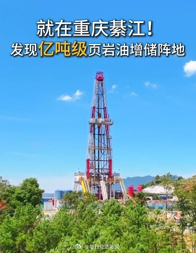 据央视新闻, 记者今天(10月23日)从中国石化获悉,位于四川盆地的风险探井——綦陆页1井,测试获高产页岩油气流,日产页岩油38.64立方 米,天然气1万立方米, 标志着 我国在四川盆地发现了一个资源量达亿吨级的新页岩油规模增储阵地。 綦陆页1井所在的綦江页岩气田,于2022年发现了千亿立方米大型整装页岩气田。綦陆页1井获高产页岩油气流,拓展了綦江地区非常规资 源类型,与2022年发现的綦江页岩气田形成"下气上油"立体成藏格局,进一步开拓了四川盆地"油气并进"战略资源格局。中国石化持续加 大页岩油勘探开发力度,已探明新兴、溱潼、复兴三个规模页岩层系新油田,2024年页岩油年产量达70.5万吨,较上年增产30.8万吨, 2025年成功提交页岩油探明地质储量2亿多吨、天然气123.52亿立方米。 页岩油是一种赋存于页岩层系中的非常规石油资源,具有广阔的开发前景,是我国原油长期稳产的重要接替力量。綦陆页1井位于重庆市綦 江区,完成钻井的页岩储层位于地下两千多米,这口井在地下水平方向钻进了超过两公里,钻遇含油性较好页岩厚度近40米。这口井的突破 揭示该区新类型优质页岩分布面积超1000平方公里,具有较高的勘探开发潜力 ...