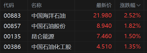 港股异动丨三桶油拉升 中海油冲高超3% 中国石油涨近2%