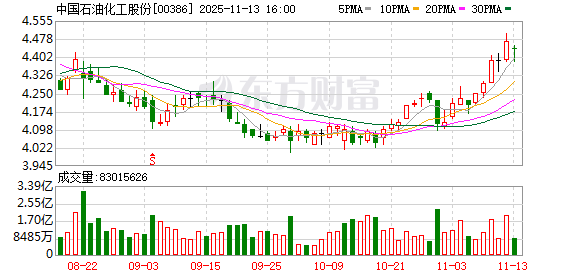 中国石油化工股份(00386)11月13日斥资1530.39万港元回购346.8万股