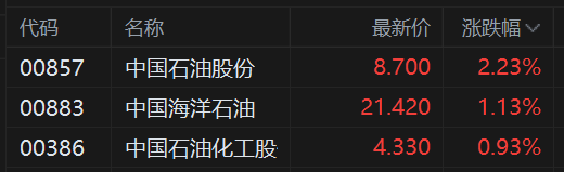 港股异动丨三桶油继续上涨,中国石油涨超2%7连升,再刷新阶段新高