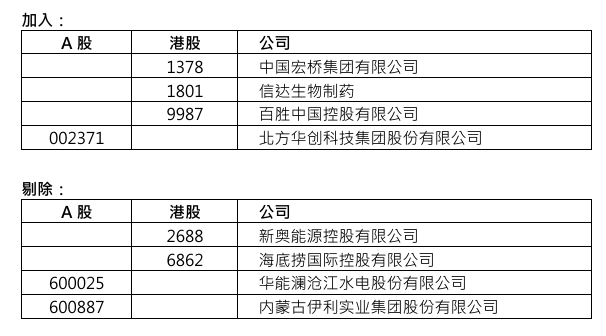 恒生香港交易所沪深港通中国企业指数最新调整公布 中国宏桥、百胜中国等4只获纳入