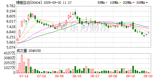 Group 1 - The stock of Boyaa Interactive (00434.HK) increased by over 4% during intraday trading on September 30, 2023, and was up 3.52% at the time of reporting, reaching a price of 6.77 HKD [2] - The trading volume for Boyaa Interactive was reported at 12.4788 million HKD [2]