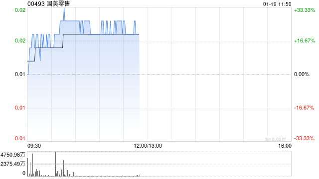 Group 1 - Gome Retail (00493.HK) saw its stock price increase by over 33% during trading, reaching a rise of 20% at the time of reporting, priced at 0.018 HKD per share [2] - The trading volume for Gome Retail amounted to 8.0636 million HKD [2]