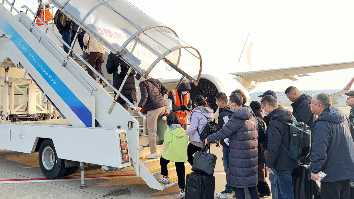 春运期间,东航上海—珠海航线每日往返航班数将达到5班,其中C919机型执行一至两班,具体以当日航班信息为准。早班MU9849航班8时20分从上海虹桥 国际机场起飞,10时50分到达珠海金湾国际机场;回程MU9850航班12时20分从珠海起飞,14时15分落地上海。下午MU7357航班16时45分从上海虹桥国际 机场起飞,19时20分落地珠海;20时30分返程航班MU7358从珠海出港,22时35分落地上海。 2月2日春运首日,东航国产大飞机C919开始执飞上海虹桥至珠海的定期商业航线。至此,东航14架C919飞机共执飞14城18条航线。 00:45 据了解,春运期间,东航14架C919客机日均执飞超50班航班,同比增长52.6%。 记者:狄春 新华社音视频部制作 ...