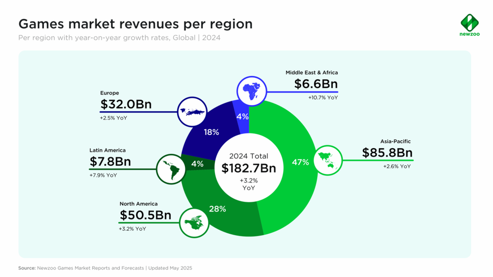 这一时期的产业叙事、主流商业模式以及技术标准,主要围绕家用主机生态和高预算的3A级买断制游戏展开。 从电子游戏诞生至今,全球电子游戏产业的权力重心长期位于北美、欧洲和日本。 北美、欧洲与日本长期以来既是全球游戏产业的核心生产中心,也是主要的消费市场,对全球游戏格局具有决定性影响。 之后,随着日本游戏开发技术的衰落和游戏人口减少,电子游戏产业的重心更是转移到以欧美为主的西方,其中的代表事件就是日本市场游戏 销量下降、SIE总部迁往美国加州和日本工作室的重组和裁撤。 来源:游戏寿司 作者:何北航 西方公司定义了现代电子游戏的工业标准与叙事范式,并塑造了全球玩家对游戏体验的期待。 然而,自网游出现和手游兴起以来,这种以西方公司为主导的游戏格局发生了深刻的结构性转变。 以中国、日本和韩国为代表的亚太地区,不仅在用户规模上占据了全球主导地位,更在营收能力、技术应用以及新兴商业模式的生产领域实现 了超越。 根据Newzoo等国际权威调研机构发布的最新报告,亚太地区已成为全球电子游戏产业增长最快、规模最大的区域市场。其中,中国市场的增 长尤为显著,在用户数量、总营收及市场活跃度等多项指标上均位居前列。 凭借庞大的玩家基数与 ...