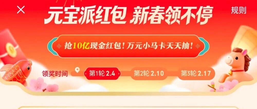 春节AI营销大战正式拉开序幕:腾讯元宝开启发放10亿红包