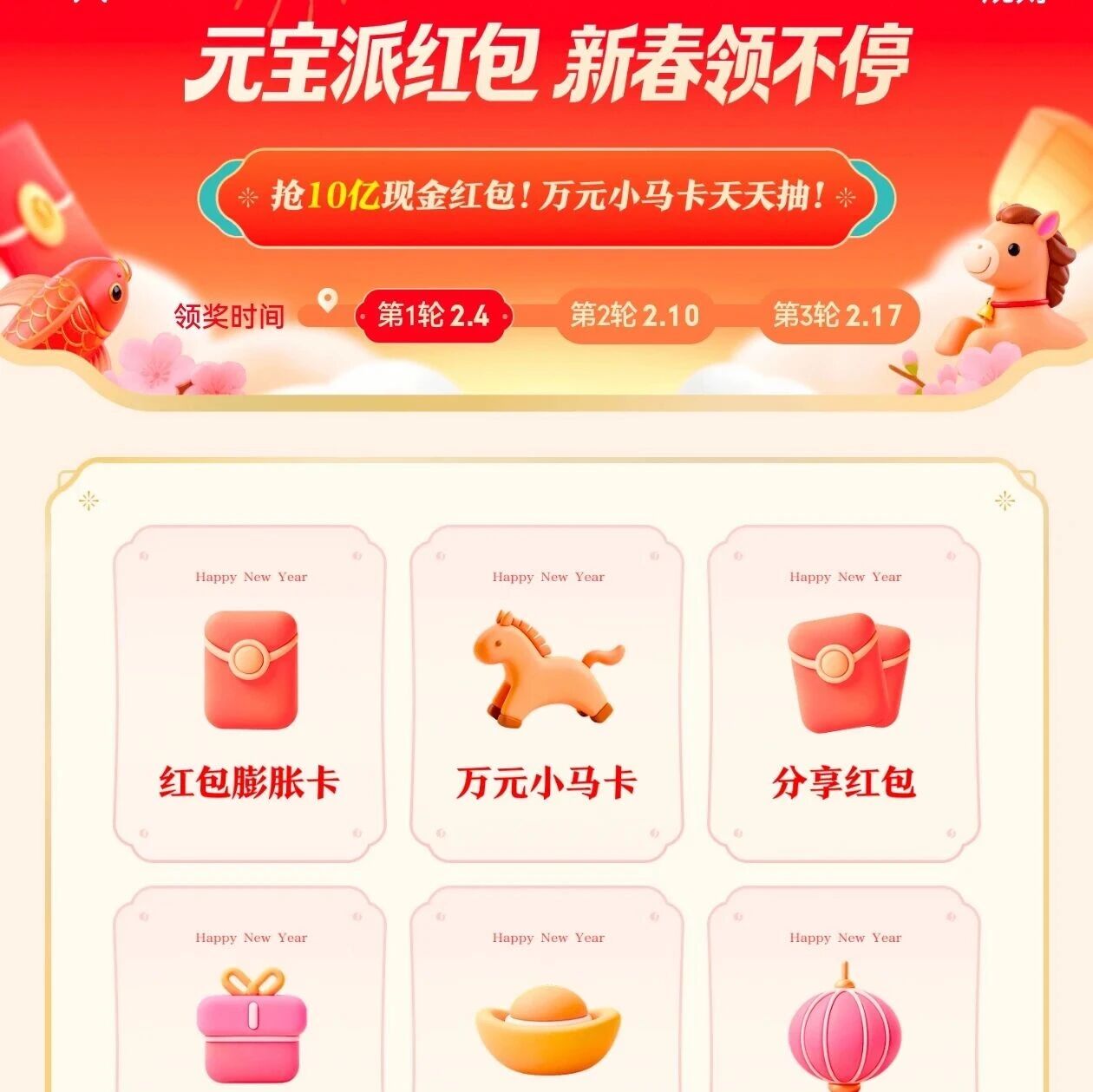记者丨曾静娇 彭新 编辑丨刘雪莹 春节即将到来,红包大战依旧,腾讯率先打响"第一枪"。与往年不同,元宝App成为主角。 2月1日凌晨,元宝微信公众号发文称,10亿现金红包开抢。不少网友称,"一早起来就被腾讯元宝红包 刷屏了""元宝的红包裂变已经在微信里轮番炸群"…… 活动设置了万元小马卡、现金红包和分享红包等红包形态。用户每天登录元宝App可领现金红包,做任 务则可抽更多红包,并有几率抽中限量100张的价值1万元现金小马卡。 腾讯此次的红包策略具有极强的导流指向性,联动了元宝、微信、QQ等多个腾讯旗下产品。除了常规 现金,元宝还设计了"分享红包",支持用户转发至微信、QQ好友等。 腾讯再度"偷袭"? 同时,腾讯此番发力AI社交,试图打破AI应用仅作为效率工具的增长天花板,转而向"社交AI"寻找留 存解法。 在斥资10亿激进获客的同时,腾讯意在突破AI聊天工具用完即走的属性。其核心思路是利用社交优 势,将AI嵌入社交网络,通过"元宝派"验证AI在群体互动中的真实价值。 在1月26日召开的腾讯2025年度员工大会,腾讯公司董事会主席兼首席执行官马化腾表示,希望此举能 够重现11年前的微信红包的时刻。 除了腾讯,百 ...