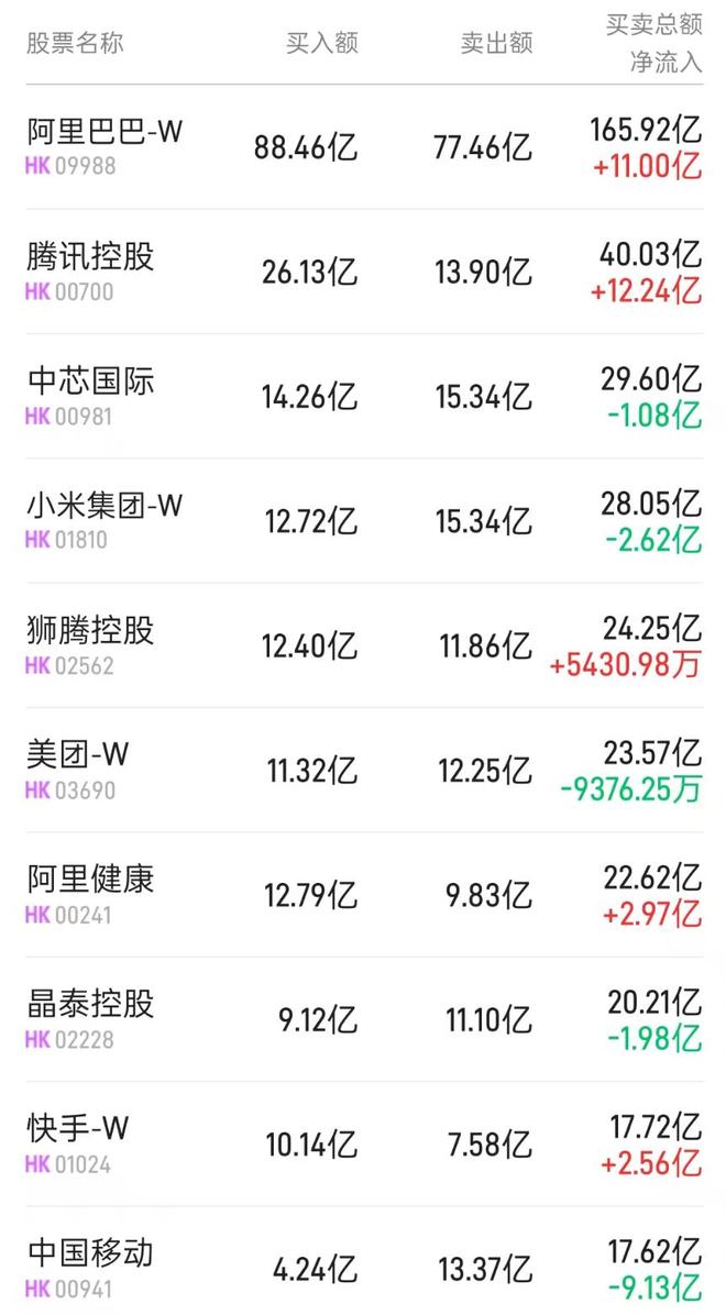 智通财经APP获悉,1月9日,腾讯控股(00700)、小米集团-W(01810)、快手-W(01024)南向资金 净流入金额位列市场前三,分别净流入14.12 亿、8.70 亿、7.75 亿 阿里巴巴-W(09988)、老铺黄金(06181)、美团-W(03690)南向资金净流出金额位列市场前三, 分别净流出-26.15 亿、-4.68 亿、-3.67 亿 | 股票名称 | 净流入比↓ | 净流入(元) | 收盘价 | | --- | --- | --- | --- | | 长江基建集团(01038) | 65.87% | 2.48 亿 | 60.800(+2.10%) | | 电能实业(00006) | 58.38% | 3.04 亿 | 57.700(+1.67%) | | 港华智慧能源(01083) | 56.59% | 914.98 万 | 3.650(-1.08%) | | 江苏宁沪高速公路 | 56.38% | 5871.48 万 | 9.140(-0.44%) | | --- | --- | --- | --- | | (00177) | | | | | 秦港股份(03369) | 55.92% ...