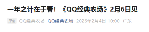 据悉,《QQ农场》是腾讯推出的一款模拟经营类游戏,于2009年5月发行,玩家在游戏中变身为一名农场主,种植作物、饲养动物、经营农作物商品。其 前身是2008年"五分钟"工作室开发的《开心农场》,2010年,游戏最高在线人数达1.2亿。 据媒体报道,《QQ农场》一直没有停运,一直可以通过PC端QQ进入,也有单独的游戏APP,但改变较大,与印象中熟悉的经典版本不同。 这次上新的《QQ经典农场》将提供手游版本,且保留了偷菜的玩法,所以用户能跟以前一样,定闹钟"顺走"好友刚成熟的蔬菜。 官方还发布了新老农场的对比图,旧版农场更偏向写实风格,土地质感也偏向现实感。新版农场偏向可爱风格,画风更偏向"Q版",也更加迎合现代手游 的可爱风。 左图为旧版狗屋 右图为新版狗屋 《QQ经典农场》的回归 让网友很激动: "青春回来了!" "谁懂啊,半夜定闹钟起来偷菜" "这一次我要把我丢失的菜 都拿回来" 本文转自【羊城晚报】; 继经典版QQ和QQ秀回归之后《QQ经典农场》 于2月6日回归! "偷菜记忆"回来了! 腾讯发文称: "地还给你留着! '偷'菜的快乐回来了! QQ经典农场现已回归上线 诚邀各位农场主马上'偷'菜!" 据"Q ...