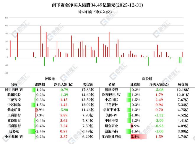图解丨2025年最后一天,南下资金大举买入中资银行股