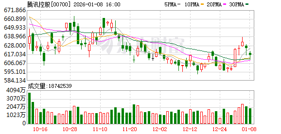 腾讯控股回购明细 | 日期 | 回购股数(万股) | 回购最高价(港元) | 回购最低价(港元) | 回购金额(万港元) | | --- | --- | --- | --- | --- | | 2026.01.08 | 103.40 | 618.500 | 610.500 | 63561.63 | | 2026.01.07 | 102.30 | 628.000 | 615.500 | 63591.01 | | 2026.01.06 | 100.30 | 638.000 | 626.500 | 63561.01 | | 2026.01.05 | 101.80 | 627.500 | 617.000 | 63555.47 | | 2026.01.02 | 102.90 | 624.000 | 600.500 | 63581.26 | (文章来源:证券时报网) 自2025年11月18日以来公司已连续35日进行回购,合计回购3637.90万股,累计回购金额222.50亿港元。 其间该股累计下跌3.22%。 今年以来该股累计进行5次回购,合计回购510.70万股,累计回购金额31.79亿港元。(数据宝) 证券时报·数据 ...