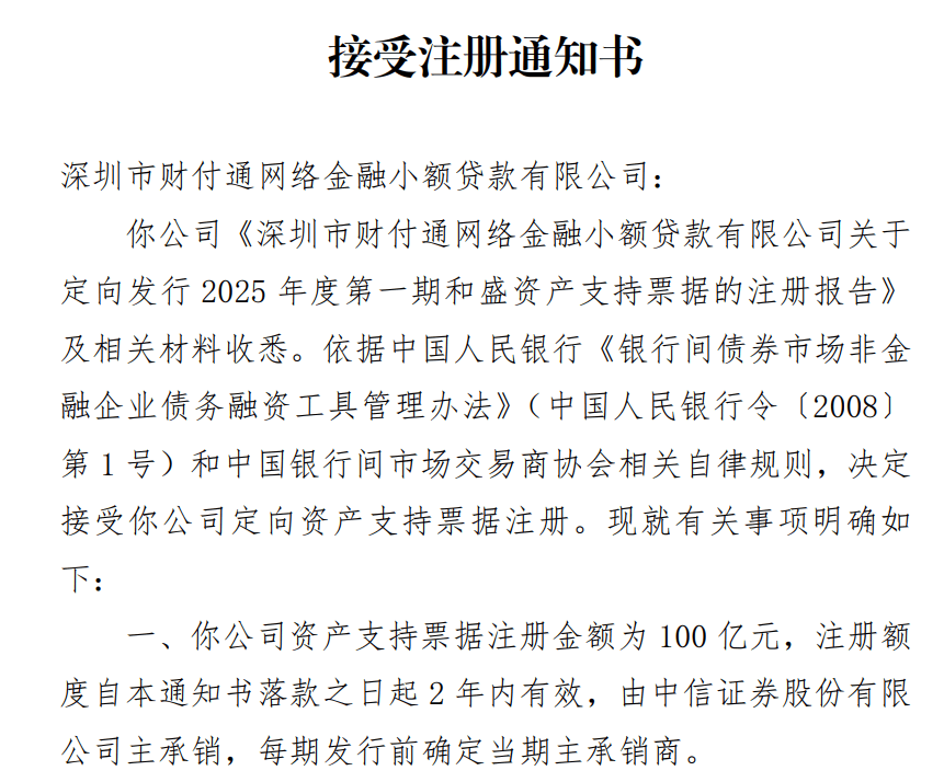 近日,中国银行间市场交易商协会发布接受注册通知书,深圳市财付通网络金融小额贷款有限公司(下称"财付通小贷")获批注册100亿元额度ABN 产品。 财付通小贷成立于2013年10月,是腾讯控股旗下的小贷公司,由深圳市腾讯网域计算机网络有限公司持股95%、深圳市腾讯计算机系统有限公司持 股5%。 今年11月份,财付通大幅增资,注册资本由105亿元增加至150亿元,行业第二,仅次于抖音旗下中融小贷的190亿。 目前,腾讯旗下主要产品为"分付",于2020年开始小范围上线,但目前仍采用邀请制,未对所有用户开放。资金由财付通小贷及合作金融机构提 供。 据知情人士透露,截至2025年6月末,分付贷款余额约1200亿元。 今年,分付还更新功能——小范围测试取现功能,用户可凭历史大额交易记录,借款至银行卡用于微信支付外的消费用途,满足用户不同场景的需 求。 | | | 财付通小贷业绩(亿元) | | | | | --- | --- | --- | --- | --- | --- | | | 2025上半年 | 2024年 | 2023年 | 2022年 | 2021年 | | 总资产 (亿元) | 153.55 | 162. ...
