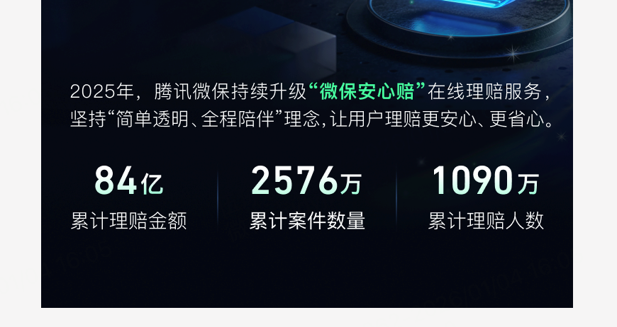 转自:新华财经 腾讯官方保险代理平台——腾讯微保近日发布了2025年理赔服务年度报告(下称:报告)。数据显示,截至2025年12月31 日,经腾讯微保平台完成的累计理赔金额达84亿元,累计服务理赔案件数量突破2576万件,累计服务理赔人数达1090万 人。 年度理赔服务创新:更快、更省心 2025年7月,国家金融监督管理总局发布《关于推动城市商业医疗险高质量发展的通知》,明确要"推动商业医疗保险可及 可信、可保可赔、可感可知"。2025年,"微保安心赔"在线理赔服务,基于用户理赔全流程体验中的各项"痛点",推动理赔 服务模式系统性再升级,将政策导向转化为用户可感知的保障体验。 报告显示:2025年,腾讯微保联手微信支付等多方试点上线了微信支付场景全国首个"商保直付"快捷通道。微医保·百万医 疗险(普惠版)的用户在深圳市南山区4家指定试点医院就诊后,出院结算时使用微信支付,即可同步完成医保报销和商业 保险理赔的直接结算。"商保直付"是腾讯微保在微信就医支付场景下保险理赔服务模式的新实践,通过将原先"医保报 销"和"商保理赔"两个串联流程,革新为出院时"医保+商保"同步结算的并联流程,实现了真正意义上的"一站式结 ...