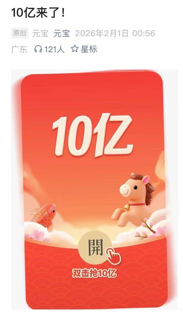 以下文章来源于新眸 ,作者李小东 新眸 . 聚焦科技与消费,记录中国产业升级新故事。 导语:元宝派,会是AI时代下一个"微信"吗? 2月1日零点刚过,不少人的微信对话框就被一条红色链接刷屏了。 腾讯元宝派正式上线10亿春节红包活动,没有复杂的助力门槛,只需完成简单任务就能获得抽奖 机会,最高可领万元现金,直接提现至微信支付。 这种"零套路"的玩法迅速点燃了社交网络,据媒体报道,分10亿元现金红包活动开启仅14小 时,腾讯元宝App便登顶了苹果商店免费榜。甚至在家庭群里引发了长辈跟风转发,同事群里开 始比拼抽奖次数,就连平日里安静的兴趣社群也被红包链接唤醒。 这场红包雨的特别之处,远不止"大方"二字。相比其他平台的补贴活动,元宝派零点准时启动, 避开了用户集中使用时段的拥堵,更显诚意。 但本质上,这10亿更像一场精准的"AI投流"——用户每一次抽奖、分享,都在完成对元宝AI功能 的初体验:@元宝总结群聊要点、让AI生成拜年表情包、发起春节打卡活动……腾讯用最接地气 的方式,让普通人第一次真切触摸到AI社交的模样。 不过,值得玩味的是背后的生态联动。元宝派的邀请链接能直接分享到微信好友、朋友圈甚至 QQ,无需下载 ...