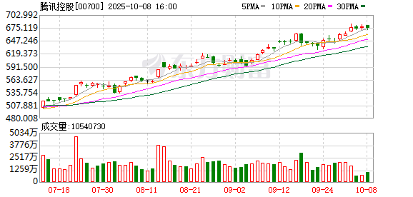 腾讯控股(00700.HK)10月8日耗资5.5亿港元回购81.7万股