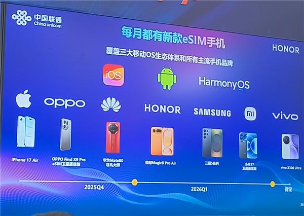 1月25日,苹果无预警官宣iPhone Air参与「年货狂欢节」,原价7999元的256GB版本立减2000元,叠加优惠券到手5499元。官降后的iPhone Air迅速卖爆, 多个平台显示发货日期延后,付款后15天内发货。 iPhone Air之所以发售三个月就迎来官降,主要还是销量不及预期。数据显示,iPhone Air激活量仅20万左右,远不及iPhone 17系列其他三款机型。对于多数 普通消费者而言,选购这款机型最大的阻碍就是eSIM。 (图源:中国联通) 就在苹果宣布官降的同时,中国联通发布了2026年eSIM的相关计划,预计接下来的一年时间里,每个月至少有一款支持eSIM的新机上线。一边是降价后卖 爆的iPhone Air,一边是中国联通大力推进eSIM新机上市,不难看出,2026年将会是eSIM用户数量暴增的一年。 (图源:荣耀) 那么为何手机厂商选择在2026年集体拥抱eSIM呢?其实这波"新机集体开始支持 eSIM"的根本原因,是这条产业链的三个关键产业终于在同一个时间节点, 找到了新的方向。 这其中最重要的自然是运营商。比如在中国联通公开的计划里,不管是鸿蒙eSIM、安卓eSIM还是苹果 ...